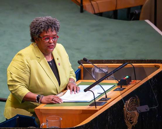 2025年9月26日,巴巴多斯总理米娅·莫特利在联合国大会上发表讲话(照片:巴巴多斯总理办公室)